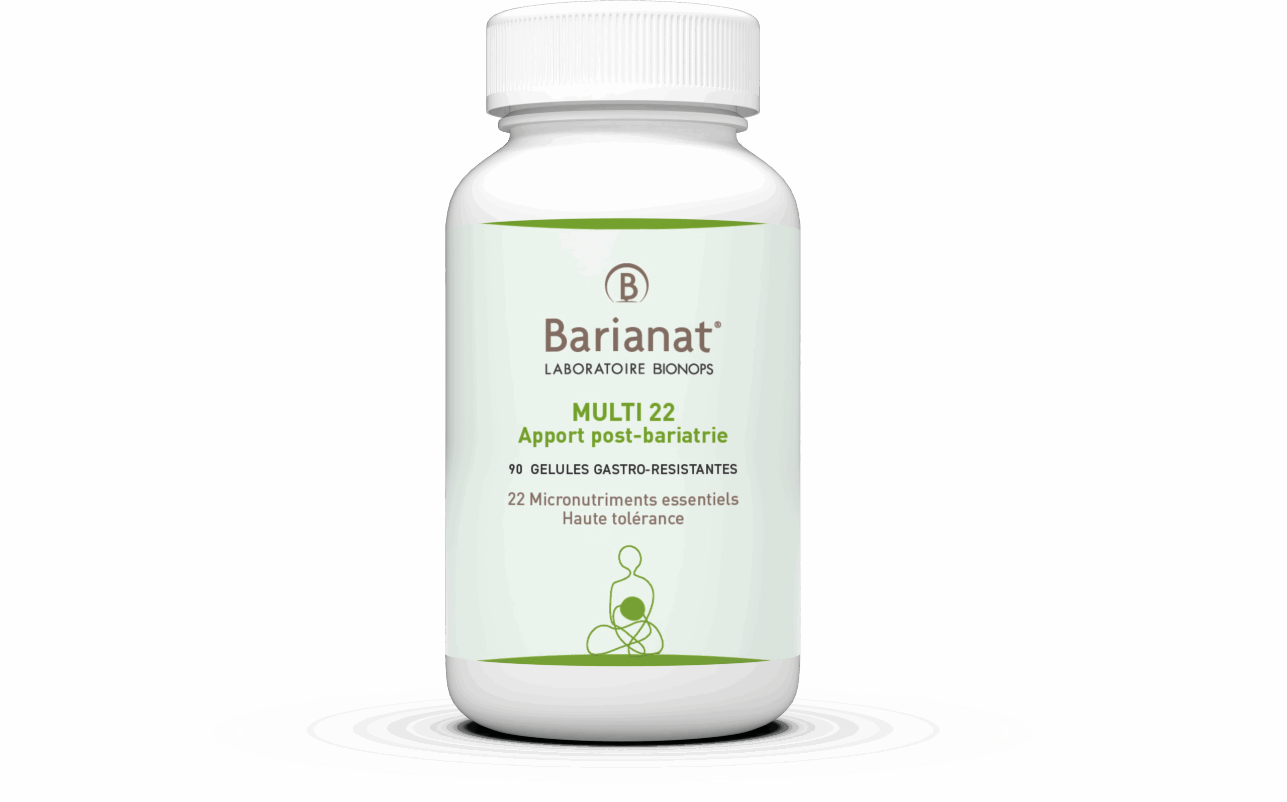 Conscient des spécificités et des contraintes propres à la nutrition post-chirurgie bariatrique, BIONOPS RESEARCH a porté une attention particulière à la sélection des ingrédients actifs, de l’agent de charge et du format galénique utilisé pour le développement de la formule MULTI 22 de BARIANAT®